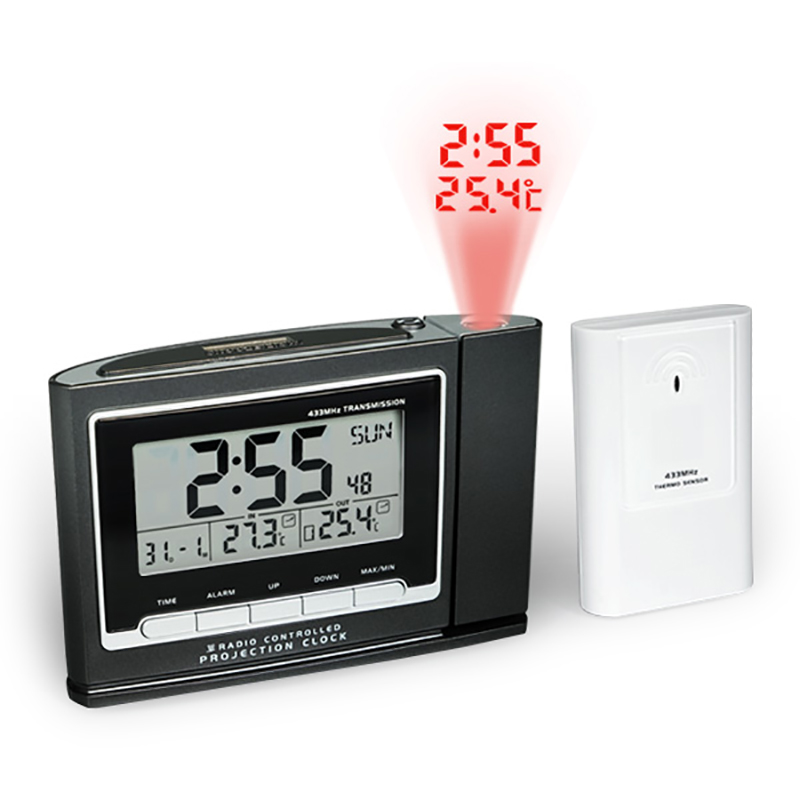 The projection feature allows you to display time and weather on a wall or ceiling for easy viewing during the night.